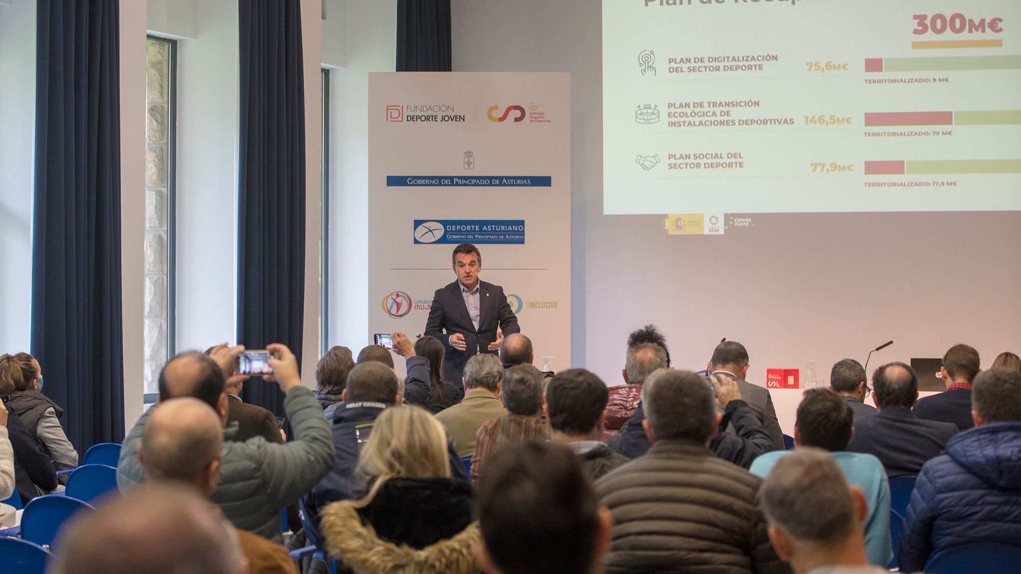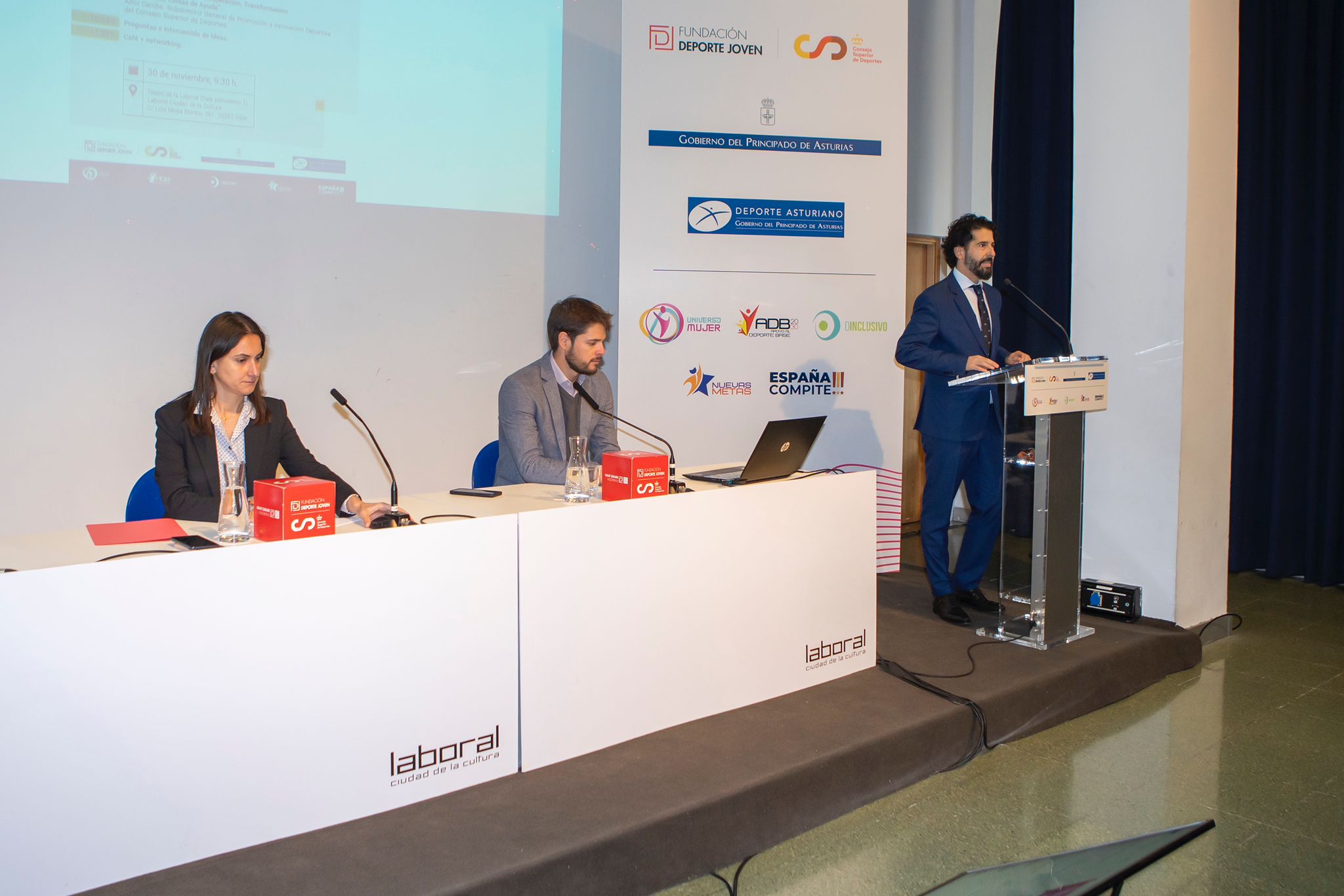 30 noviembre 2022.- El Teatro de la Laboral Ciudad de la Cultura de Gijón acogió el pasado 30 de noviembre el desayuno informativo “Incentivos fiscales al mecenazgo deportivo y Plan de Ayudas Next Generation EU”, organizado por la Fundación Deporte Joven del Consejo Superior Deportes, con la colaboración del Gobierno del Principado de Asturias, a través de su Dirección General de Deportes.